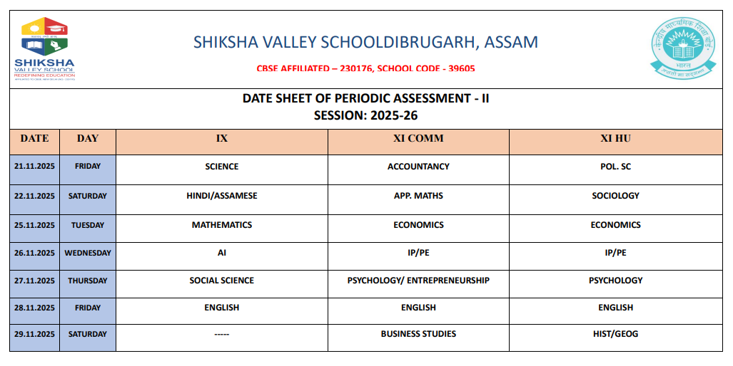• Periodic Assessment II for class IX & XI