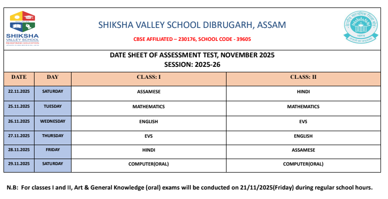 • Assessment test for Class I & II